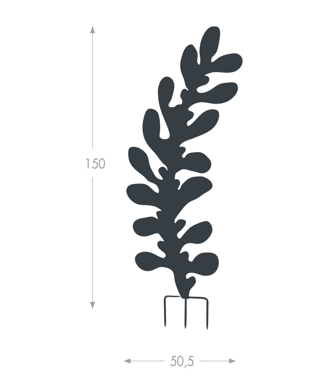 Verschönern Sie Ihren Garten oder Balkon mit diesem dekorativen Blatt mit Eukalyptus-Motiv aus anthrazitgrauem Metall. Mit seiner Höhe von 150 cm und seiner Breite von 50,5 cm verleiht es Ihren Außenbereichen eine natürliche und elegante Note. Diese Dekoration aus Metall mit Epoxidfarbe ist frost- und UV-beständig und gewährleistet eine optimale Haltbarkeit. Die Verstärkungsstruktur auf der Rückseite erhöht ihre Festigkeit und lässt sie besser gegen Wind widerstehen. Dieses Metallblatt ist einfach zu installieren und kann direkt in Ihrem Garten gepflanzt oder mit anderen Dekorationen kombiniert werden, um ein harmonisches Gesamtbild zu schaffen.