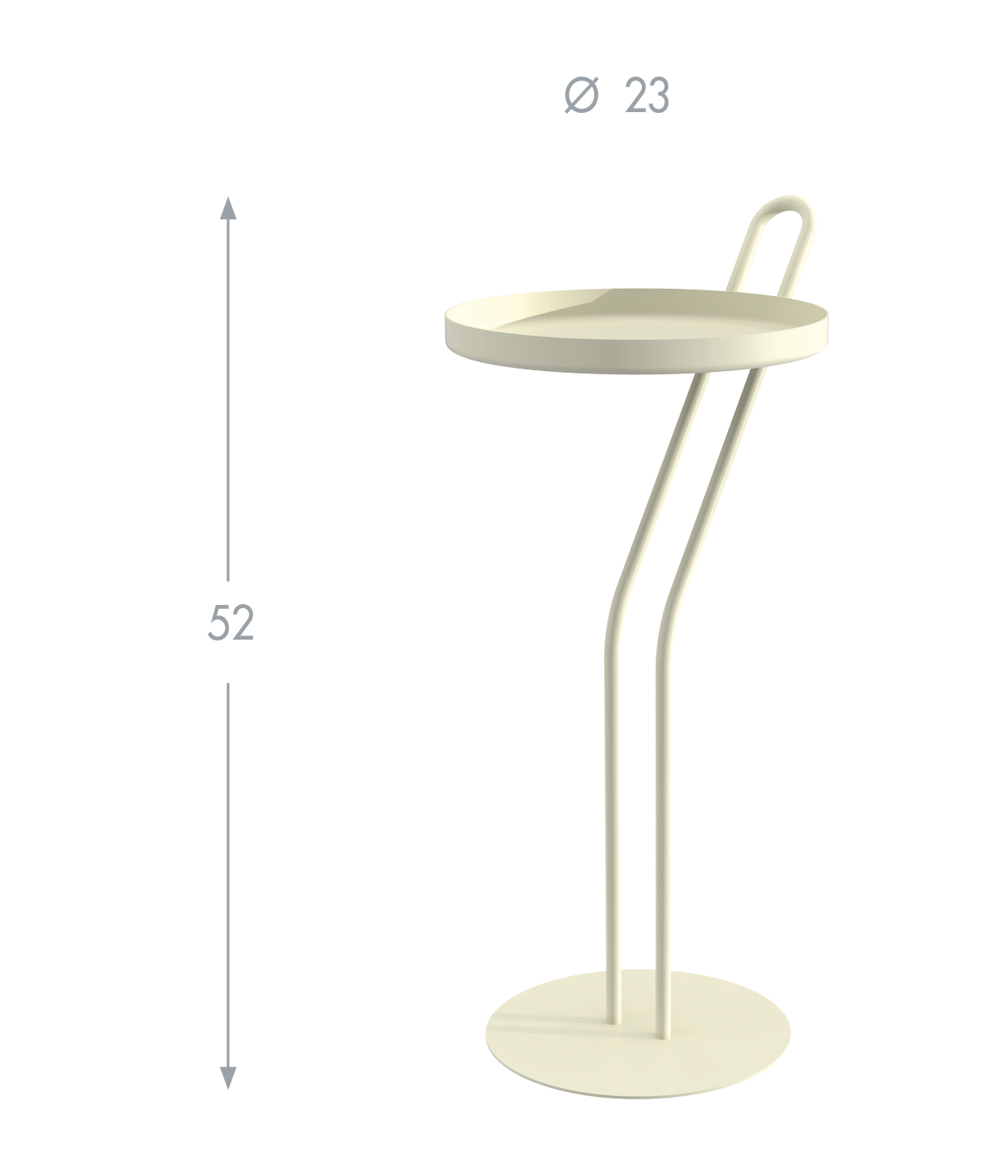 • Dimensões: altura 52 cm, tabuleiro 23 cm de diâmetro.