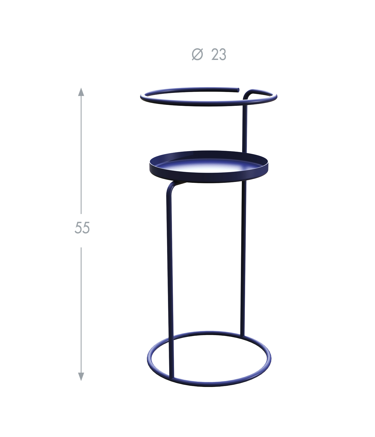 • Dimensões: altura 55 cm, tabuleiro 23 cm de diâmetro.