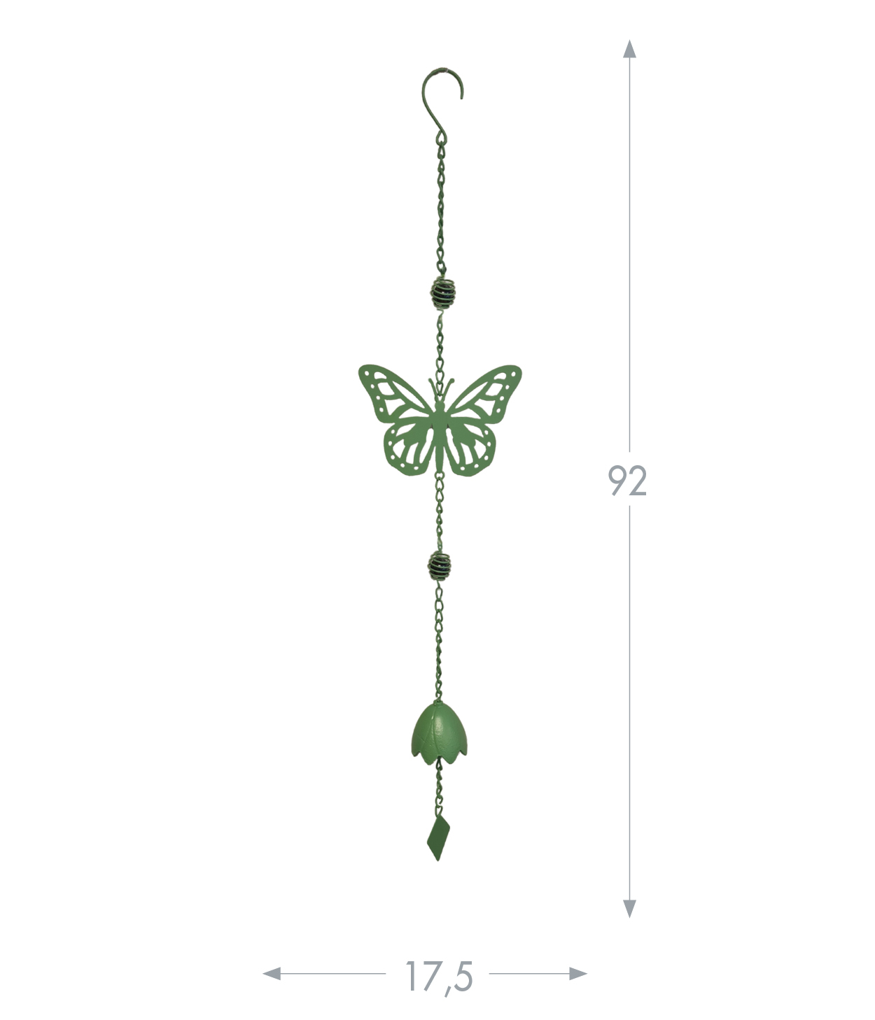 • Carillón de metal con motivo de mariposa verde pálido: elegante decoración sonora para exteriores.