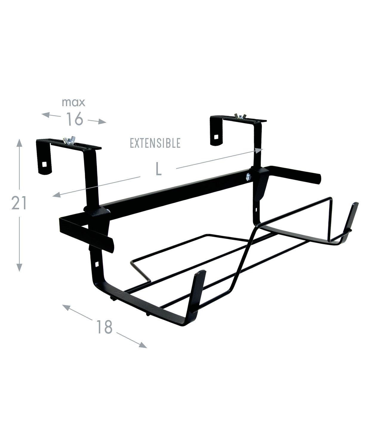 • Per balconi, terrazze e recinzioni • Compatibile con fioriere 40-60 cm • Lunghezza regolabile 44-65 cm • Fissaggi regolabili • Pratico e facile da installare