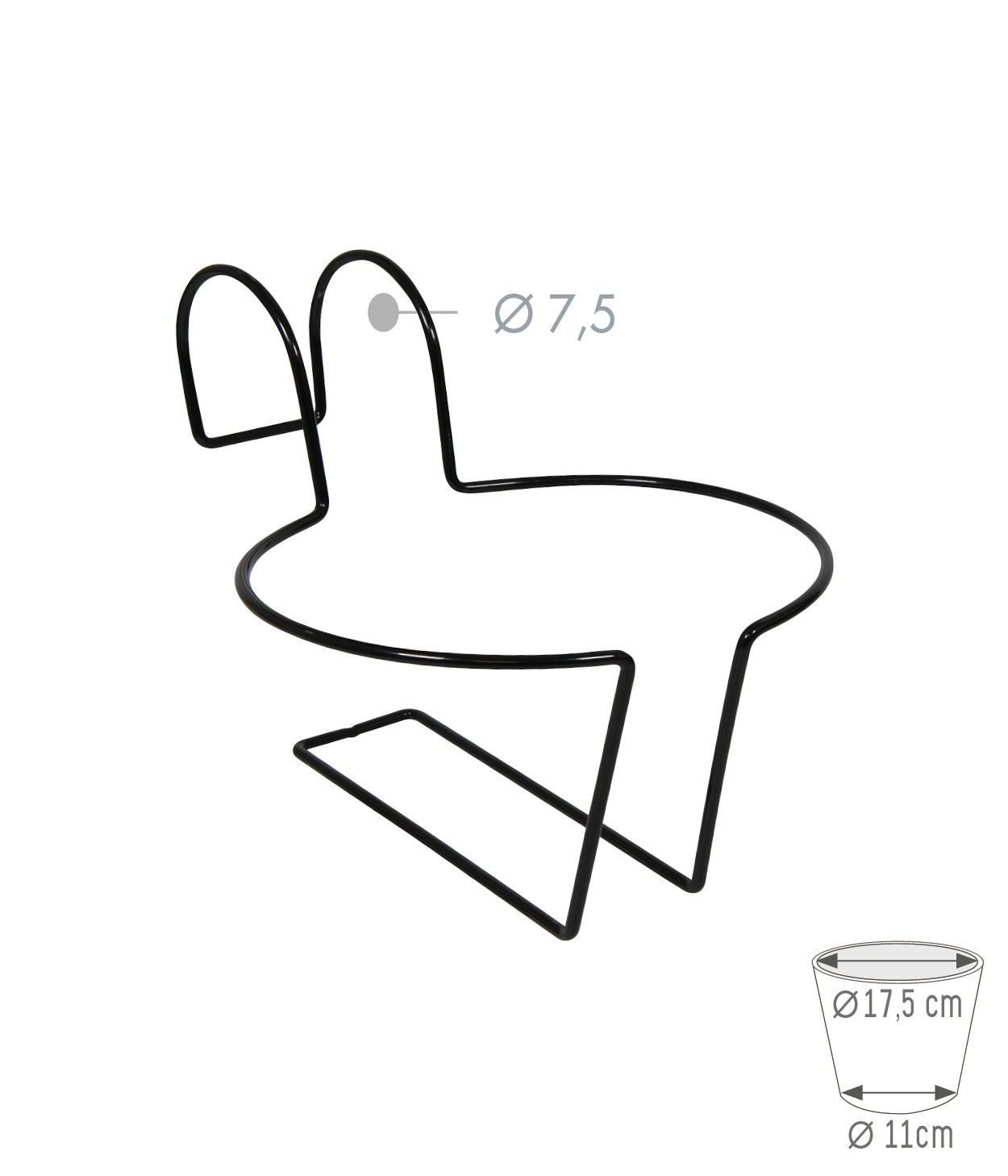 Essentis schwarzer Topfhalter, geeignet für Töpfe mit einem Durchmesser von 15 bis 20 cm. Sein Durchmesser beträgt 15 cm unten und 20 cm oben, und er kann bis zu 15 kg tragen. Diskret und praktisch, ist er perfekt für die Installation Ihrer Blumentöpfe auf einem Balkon.