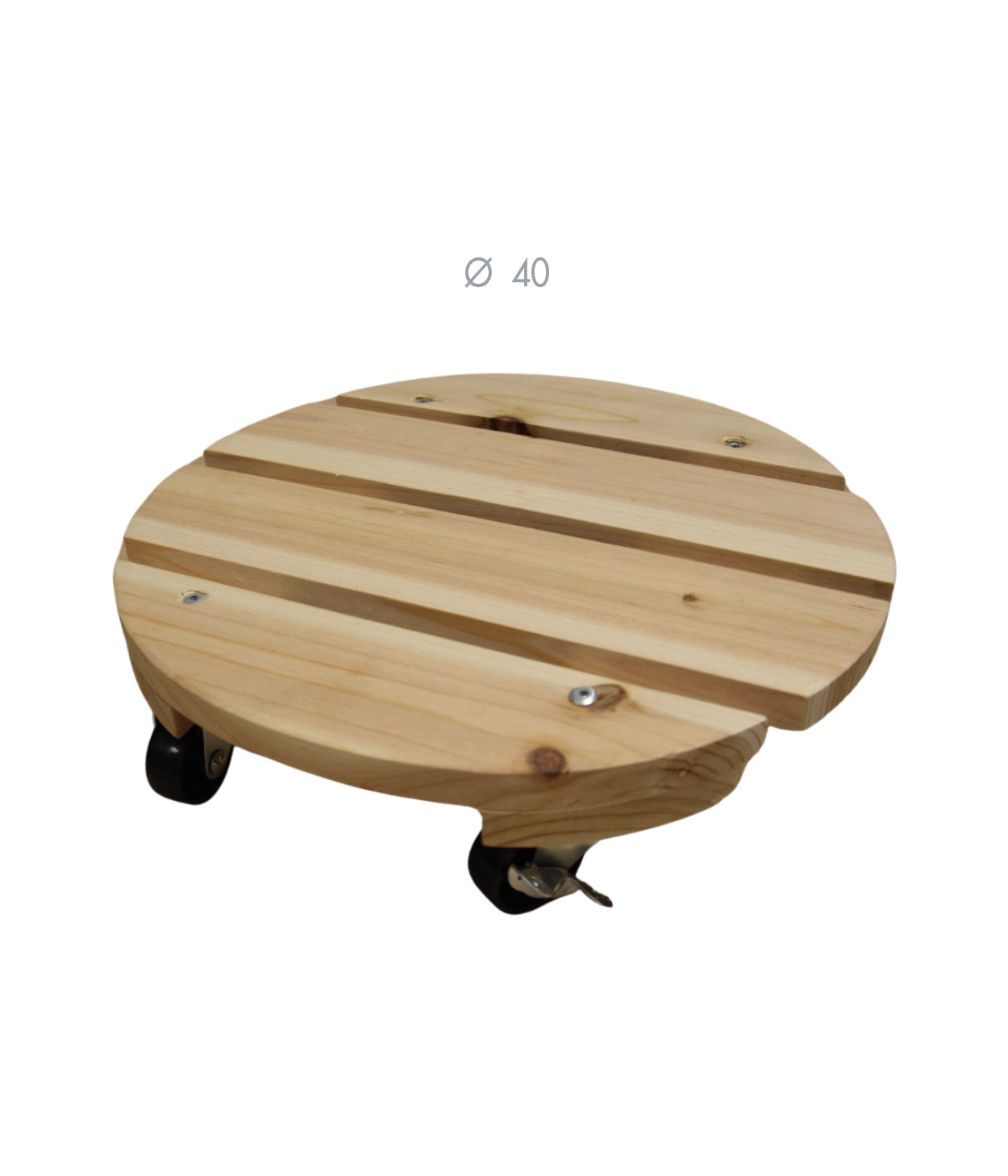 Essentis raw wood plant dolly, 40 cm diameter, for easily moving your pots indoors or outdoors. It has 4 wheels and can support up to 80 kg. Discreet and practical, it adapts to all decoration styles.