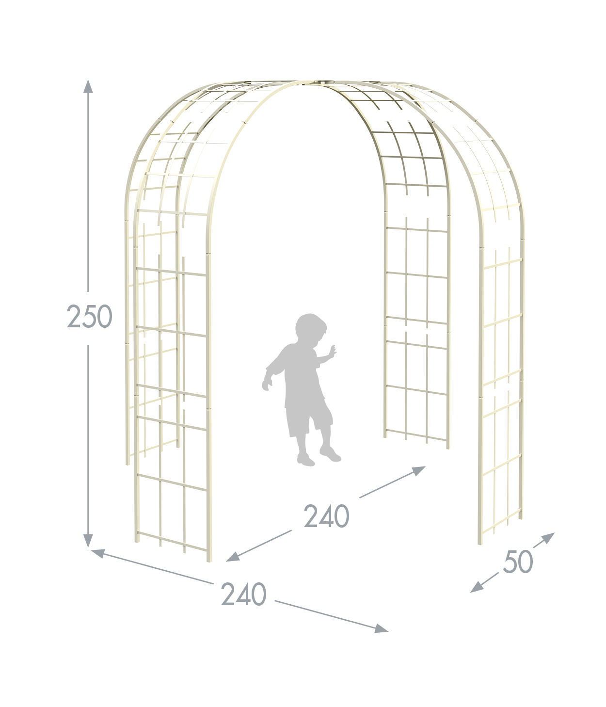 Add elegance and structure to your garden with this beige metal gazebo. Its height of 250 cm and width of 240 cm make it an imposing decorative element, perfect for enhancing your climbing plants, roses, or floral arrangements. Designed with 20 mm square metal tubing, this gazebo offers solidity and stability, with rectangular pattern ladders that facilitate the growth of your plants. The decorative sheet metal roof features an elegant rosette pattern, bringing a refined and artistic touch to your outdoor space.